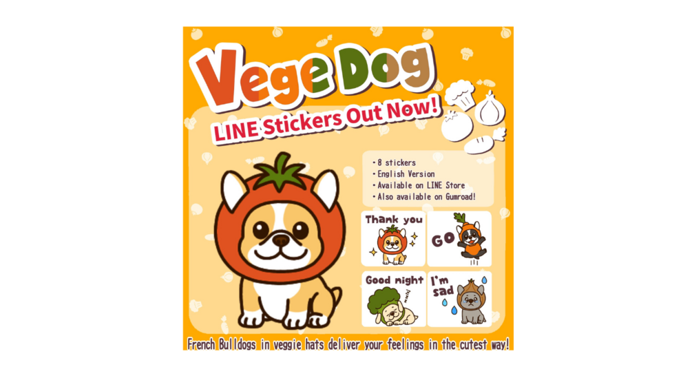 Meet VegeDog, a set of original Japanese characters — cute French Bulldogs wearing vegetable hats!